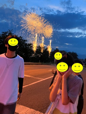 間近で見た花火の音は体に響きました。