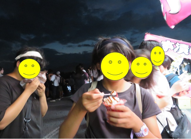 花火の合間に屋台でクレープを買って食べました。花火いいけど、クレープもうれしいね。