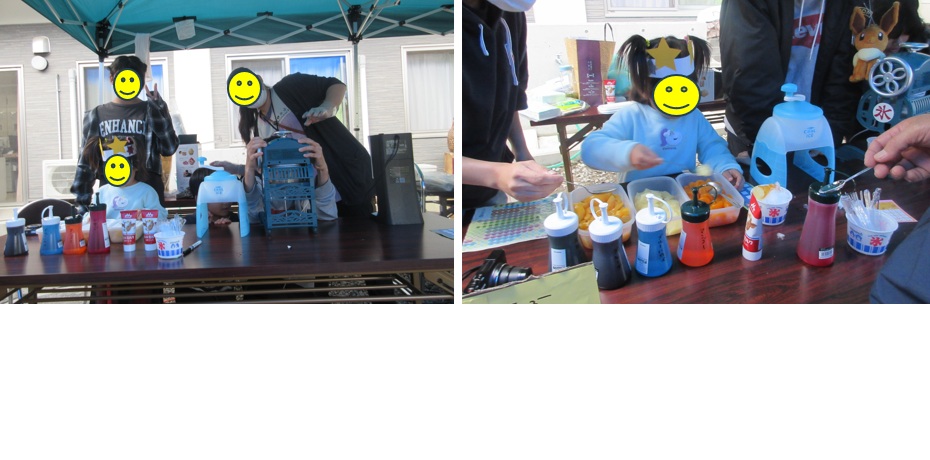 屋台は「かき氷」「たこ焼き」「フランクフルト」「焼き鳥」「クレープ」「ボンボンすくい」等を